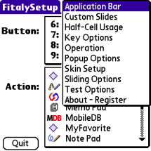 The Palm OS has a Control state that has been so far only used by hardware keyboards. In this new version of FitalyVirtual, you can set the Control state by sliding from the Command key to the Shortcut key: