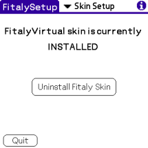 The Skin Setup panel of FVSetup is used to install the Fitaly skin over the virtual Graffiti area. Once installed, the panel appears as shown on the left, displaying the Uninstall button..