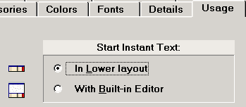 ![]() 4.3 Start Instant Text in Lower Layout In version 3, this was done with the /W command line parameter. Version V makes it easier to specify and this is the default option upon installation.