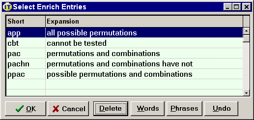 Then buttons of the Enrich dialog can be used to delete entries. The Words and Phrases buttons are used to retain only words or only phrases.