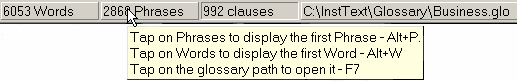 To display the start of the word section, click on "Words" on the status bar or type Alt+W. To show the start of the phrase section, click on "Phrases" or type Alt+P. Here too, you can place the mouse on the status bar to see what these shortcuts are.