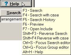 A history of previous searches is maintained. The history is available in a drop-down list which opens with F5 or with a click on the search list button.