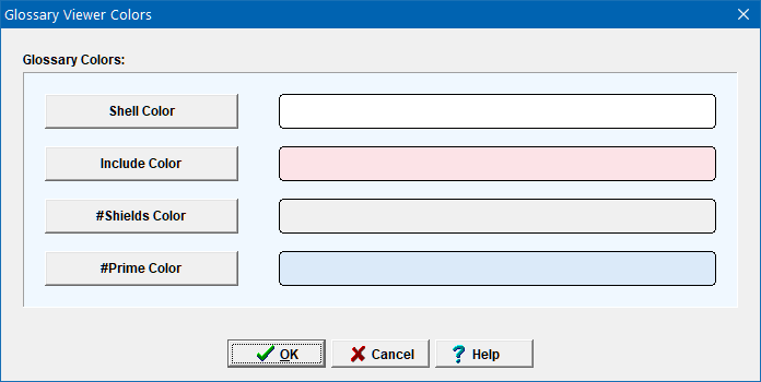 The Glossary Viewer Options Colors... menu item opens the Glossary Viewer Colors dialog: