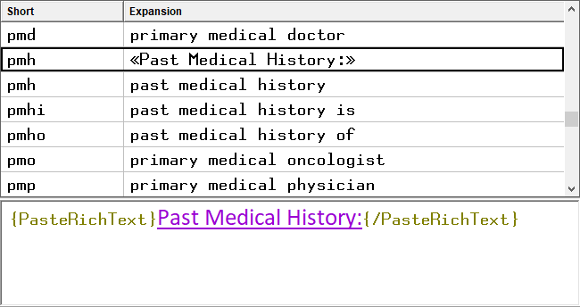 In the following example the Preview Window displays a glossary entry which uses the Paste Rich Text command to produce formatted text: