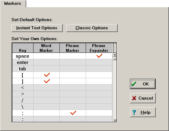 In addition, Instant Text allows the choice of marker keys for expansion. Markers provide a better control on when to expand. They reduce the risks of unintentional expansion, especially when dealing with very large glossaries — Note that an Instant Text glossary may have more than a million entries!
