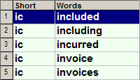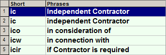 For example, with a contracts glossary, the letters ic will correspond to many possible words displayed in the Word Advisory: