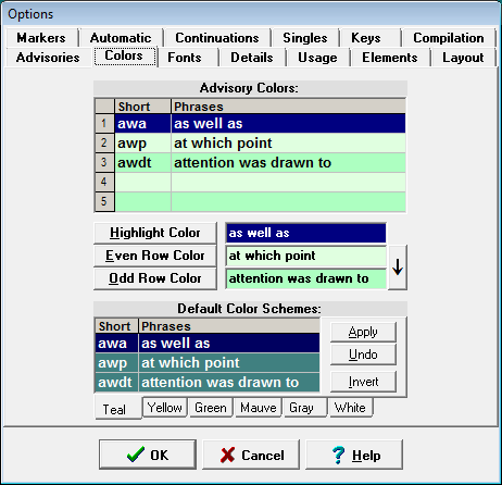 The Advisory Colors menu item of the Options Menu opens the Options Colors page that lets you specify the colors of advisories, either directly or using predefined color schemes: