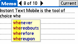 Working with Instant Text Mobile is very simple: You just type a few letters with a method of your choice and suggestions appear in an advisory. If you see what you are looking for, you just tap on it to enter it. For example, you start to type whe and you can now select the word whenever.