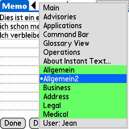 Als Glossarien für Instant Text Mobile können Sie Dateien im selben Format wie für die Desktopversion von Instant Text verwenden. Viele dieser Glossarien finden Sie im Internet (teilweise kostenlos). Siehe Instant Text Glossary Exchange.