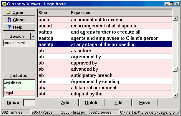 Instant Text V Pro Presentation Notes Contents: 1. Major New Functionality 1.1 The New Glossary Viewer The original Glossary Viewer was designed at a time when "includes" were not yet part of Instant Text. Consequently, it offered little help to resolve questions such as finding out from where a given entry comes - from what include. The new viewer has been designed to reflect these needs as well as to provide more convenient access and faster ways for editing glossary entries.
