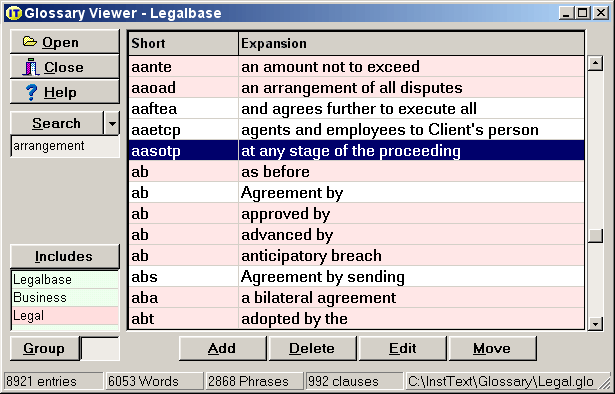 Much of the efficiency of working with Instant Text comes from the glossaries you use. The new Glossary Viewer is the tool of choice to maintain glossaries and to find out about their contents.
