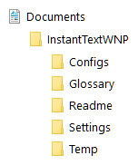 The path of the InstantTextWNP folder under Documents may vary depending on your use of OneDrive: