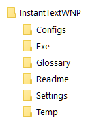 In this case you will get a so‑called portable installation with the executable and the user specific data bundled under a single InstantTextWNP folder. The Portable Installation creates a single InstantTextWNP folder which contains both the executable and the user specific data: