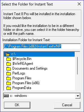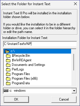 The Program Files Installation creates 2 InstantTextWNP folders: