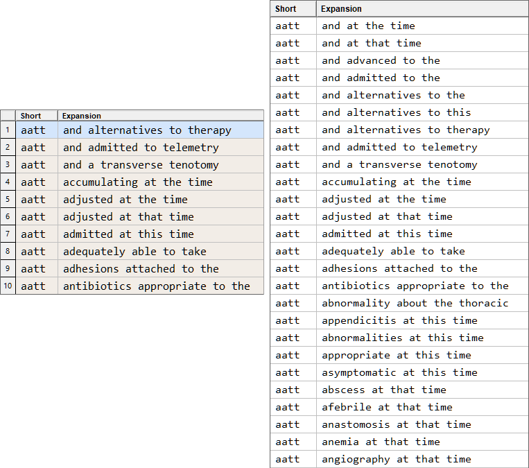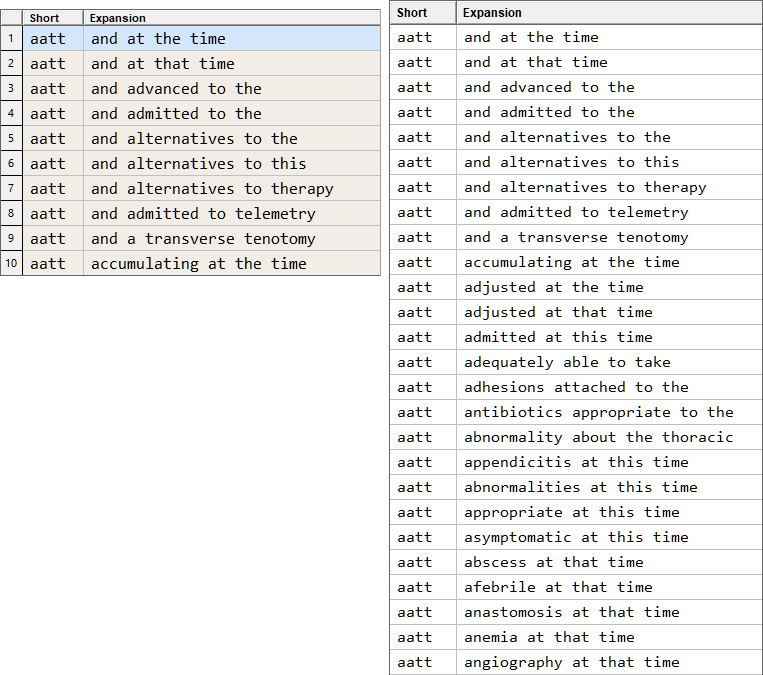 Most traditional expanders don't allow duplicate short forms. Instant Text with its Expansion Table and Line Number Selection offers a unique combination, that enables you to access several potential expansions for the exact same short form. When you use the Line Number Selection you are effectively scrolling the expansion table. Let us explain how the scrolling works with a visual example.